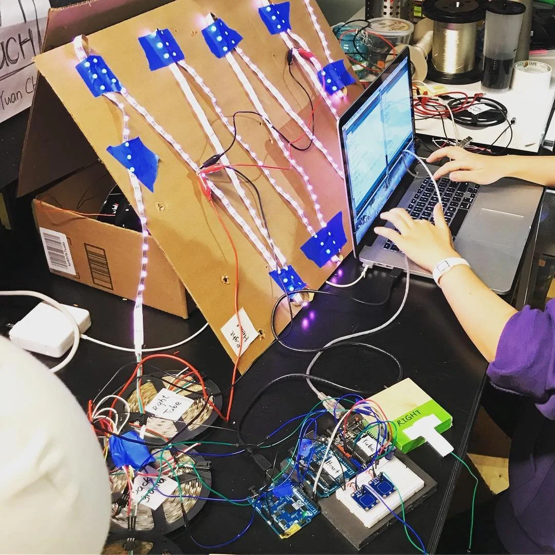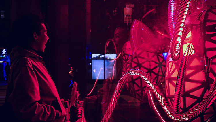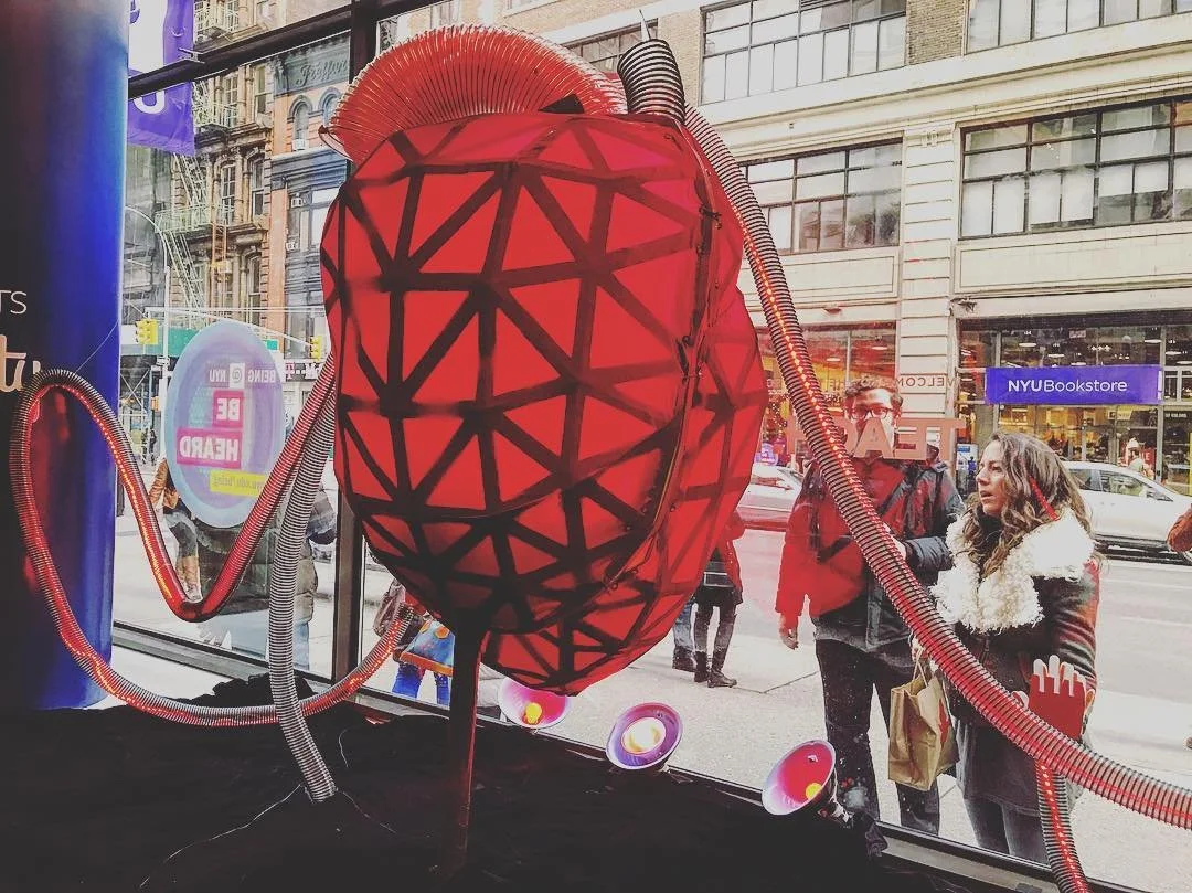 CityBeat is built to be a standalone or window installation that can be displayed in a variety of fashions suited to a space's needs. It allows strangers to connect with each other in passing by prompting them to press their hands against a point, often a window, and to follow the light they generate as it travels into a giant beating heart. When two people connect at the same time, the heart beats stronger and brighter, eventually filling the whole space with its unique light.
